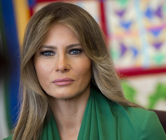 لقائهما في البيت الأبيض في واشنطن جمع بينهما، إذ ارتدت السيّدتان بزّة نسائيّة كلاسيكيّة على شكل تنّورة، لكن كلّ منهما على طريقتها الخاصّة. اختارت ميلانيا ترامب تصميماً باللون الأخضر الزمرّد، تميّز بوشاحٍ طويل لفّ حول عنقها وانسدل حتى خصرها، ليلتقي مع حزامٍ أسود رفيع مدح قوام هذه العارضة السابقة الممشوق. نسّقت إطلالتها الكلاسيكيّة مع حذاءٍ من Christian Louboutin بنقشة التمساح.