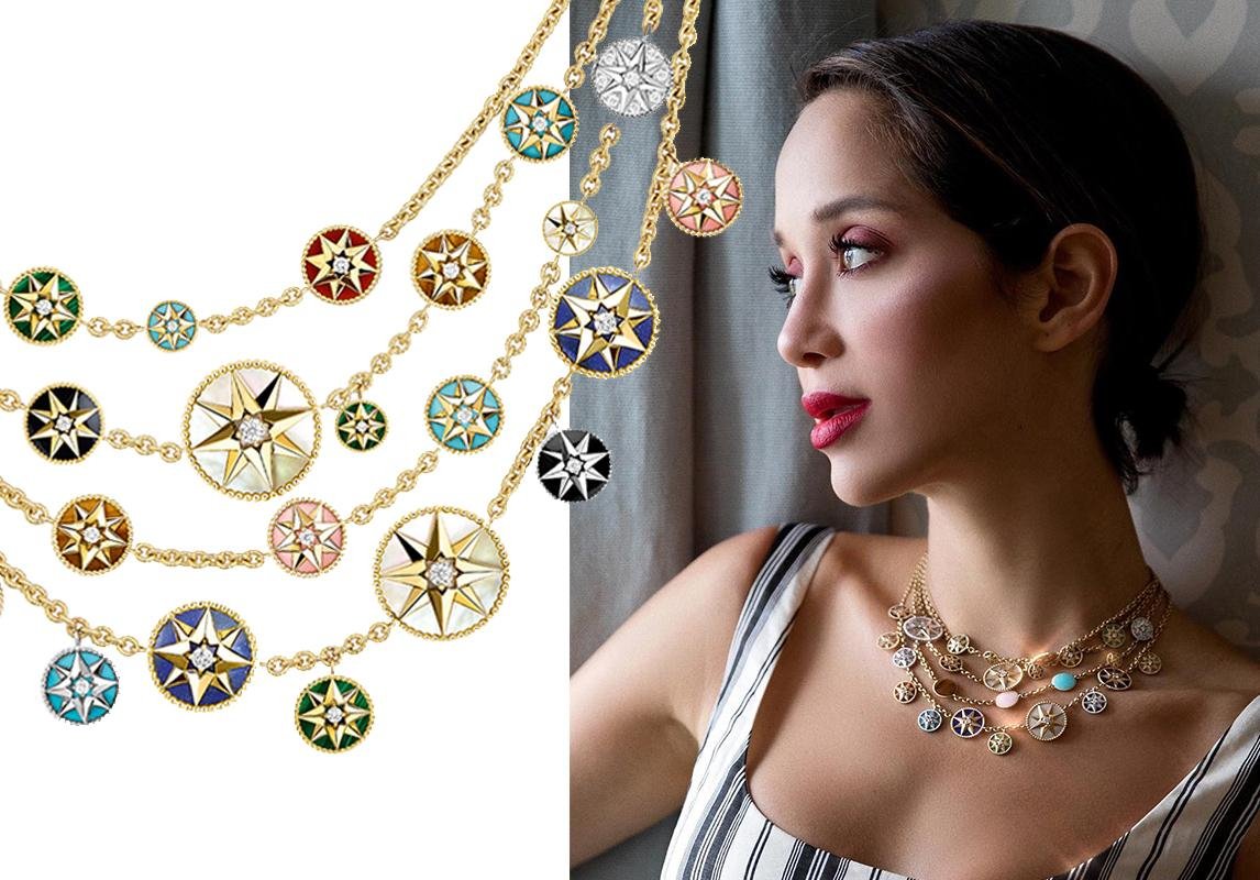 مجموعة مجوهرات ستنير دربكِ! هي تجسيد للخلق والإبتكار: "خلق وإبداع يدوران حول البحث وقلب الأمور لإيجاد نقطة أساسيّة والإنطلاق في رحلة فريدة." تصاميم صغيرة الحجم لكنّها تحمل روح المبدع Monsieur Dior في تفاصيلها، فتروي لكِ نبذة عن حياته، وتهمس في أذنكِ قِصّة حالمة تولّد فيكِ الأمل والتفاؤل. مجموعة Rose des Vents التي صمّمتها Victoire de Castellane، المديرة الإبداعيّة للمجوهرات في هذه الدار الفرنسيّة، ترمز للسفر، وتحمل أصداءً من نجمة كريستيان ديور التي وجدها في إحدى الشوارع فاعتبرها جالبة للحظ، لا بل إشارة لإنشاء دار أزيائه الخاصّة. هي مجموعة المجوهرات نفسها التي تفصح لكِ عن الوردة المفضّلة لدى مؤسّس ديور. رمزان اجتمعا في تصميم واحد اتخذ شكل وردة الرياح، وزيّن كل تصاميم المجموعة.